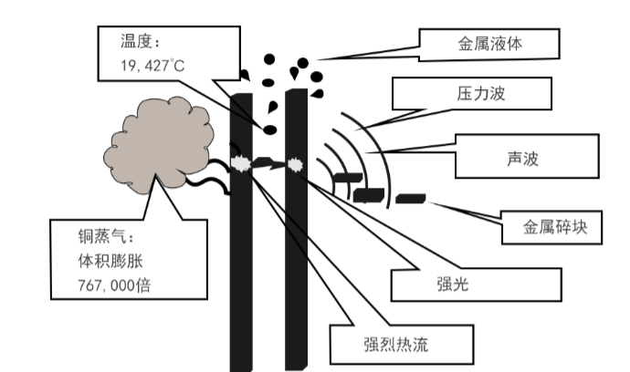 圖1-1銅排之間產(chǎn)生的電弧及其效應